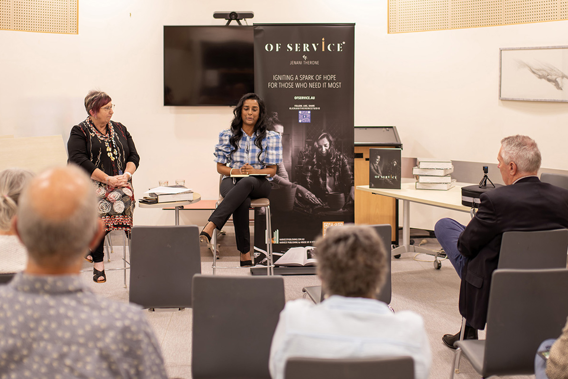 Jenani has held numerous author talks at libraries and RSL venues, sharing behind-the-scenes stories and the veterans’ narratives that inspired Of Service. These events fostered dialogue about mental health and resilience within the community. We encourage and please feel free to get in touch with Jenani if you would like to organise an Artist/Author talk/presentation of Of Service, a journey that continues.